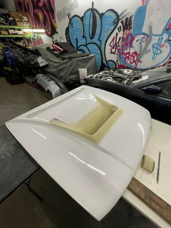 Final Bout prep kicked off with finally finishing up the hood. I went back and forth trying to decide whether I should fully remove the vent and start over, but salvaging what I already had done seemed to be the most time-efficient route though some day I would like to start from scratch again. The two main issues I wanted to fix were 1 - the transition from the area in front of the vent to where it had been grafted and 2 - connect and smoothen the backside of the vent to the underside of the hood.